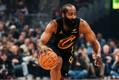 骑士球员詹姆斯-哈登首节比赛3投2中,三分2中1,罚球1中0得到5分1助攻。